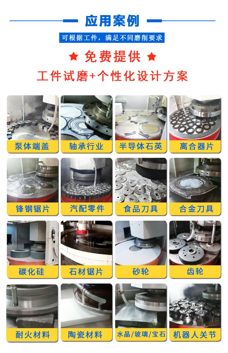 適(shi)用(yong):適(shi)用(yong)于冶金,鋸片,汽車,拖拉機,工具,軸(zhou)承(cheng),玻璃,石材等行業對大型零部件的磨削加工。